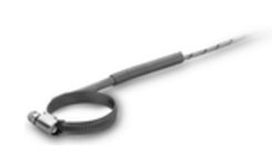Common names also include ‘pipe-clamp thermometer’ and ‘pipe-clamp RTD’. These are used to determine the temperature on pipelines and cylindrical bodies. They are attached using the adjustable clamping band. The connection lead’s bend-protection spring serves as mechanical protection.